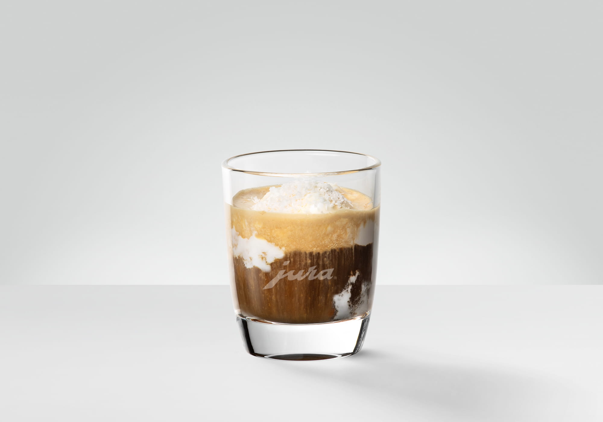 • Tegyen egy gombóc kókuszfagylaltot egy eszpresszós pohárba.